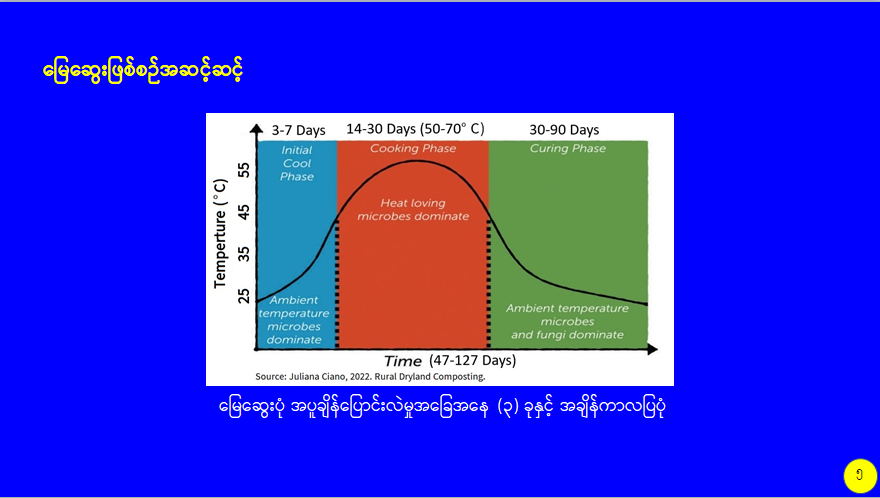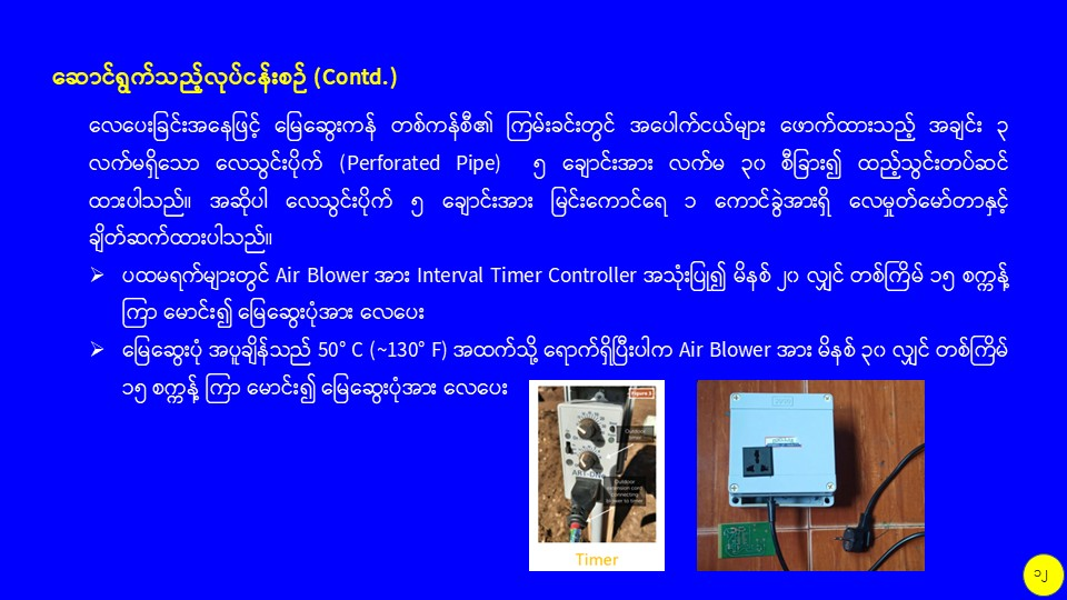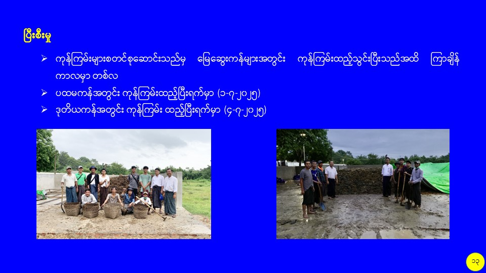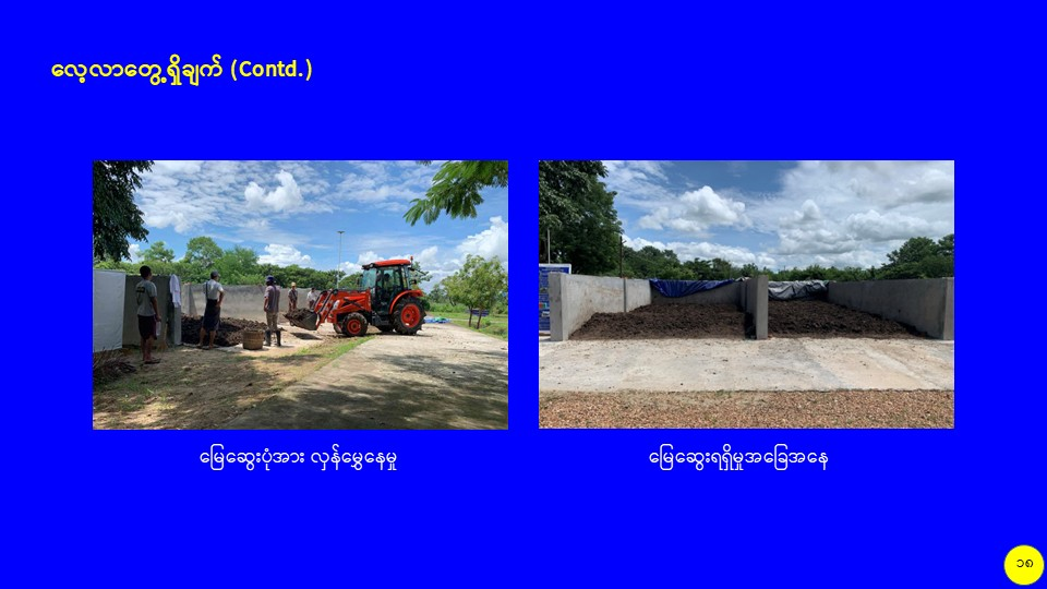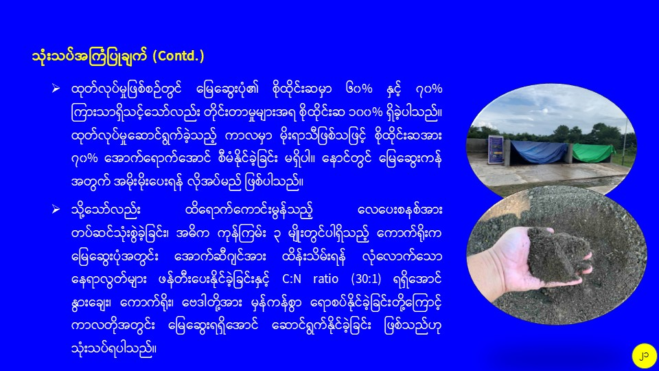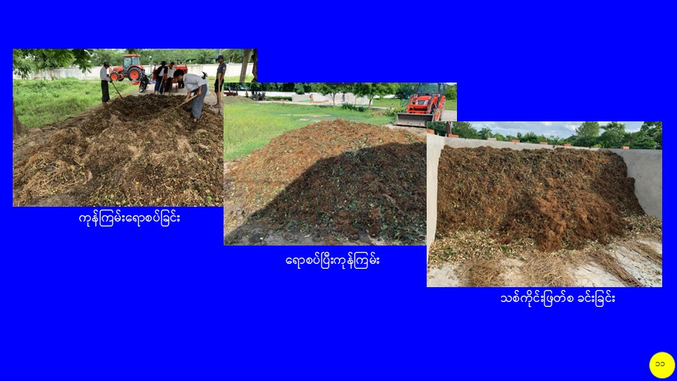 စိုက်ပျိုးမွေးမြူရေးဆိုင်ရာစွန့်ပစ်ပစ္စည်းများကို အသုံးပြု၍ လေပေးစနစ်ပါ မြေဆွေးကန်ကြီးဖြင့် သဘာဝမြေဆွေးထုတ်လုပ်မှု သုတေသနလုပ်ငန်း